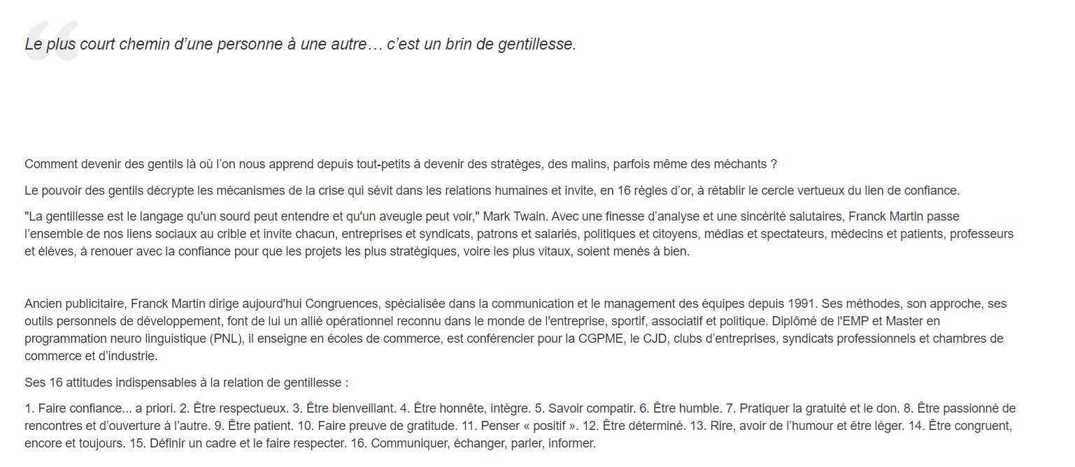 Rencontre avec Franck Martin au CHATEAU PERRACHE le 7 mars 2018. Une rencontre découverte autour de son livre « le pouvoir des gentils ! »